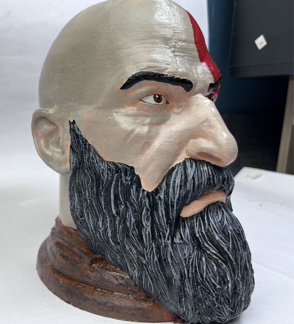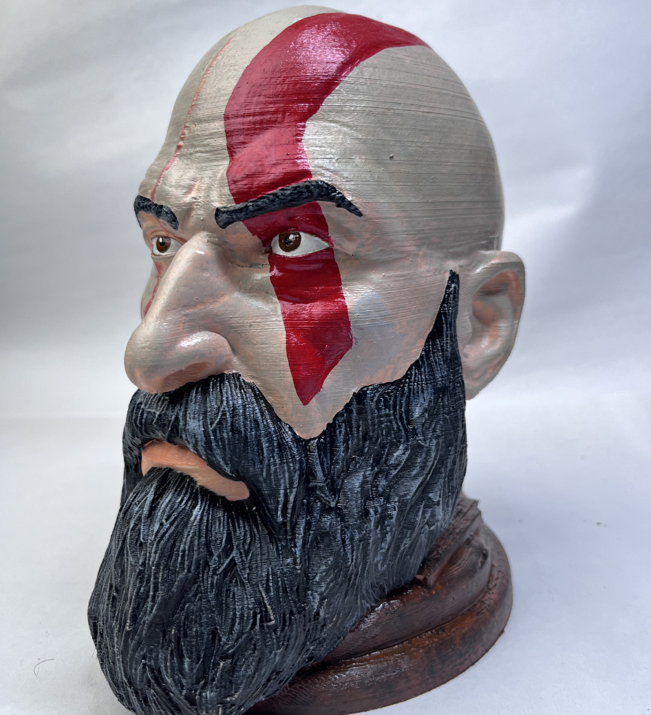 High-Precision Detail: Captured through advanced 3D printing to ensure Kratos’s intense expression and textured beard are sharp and accurate.