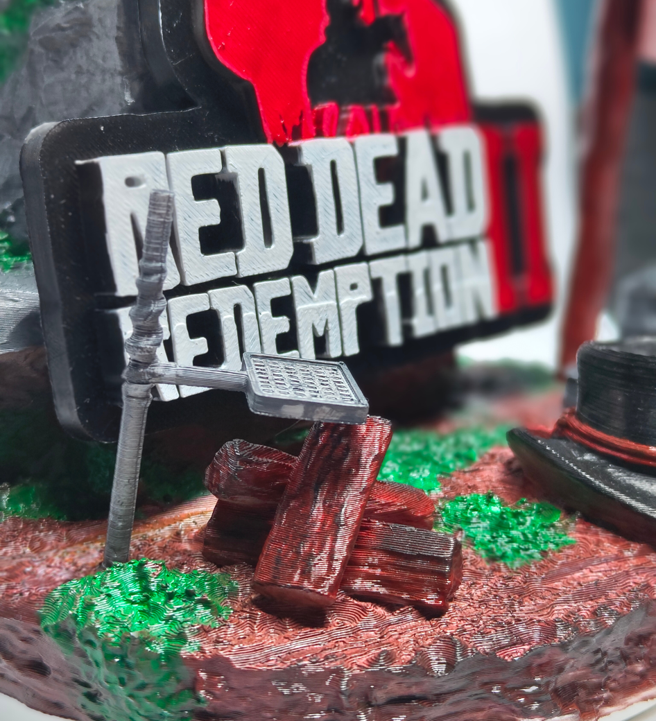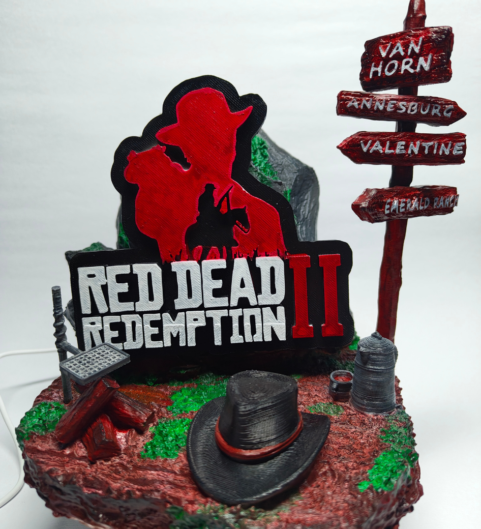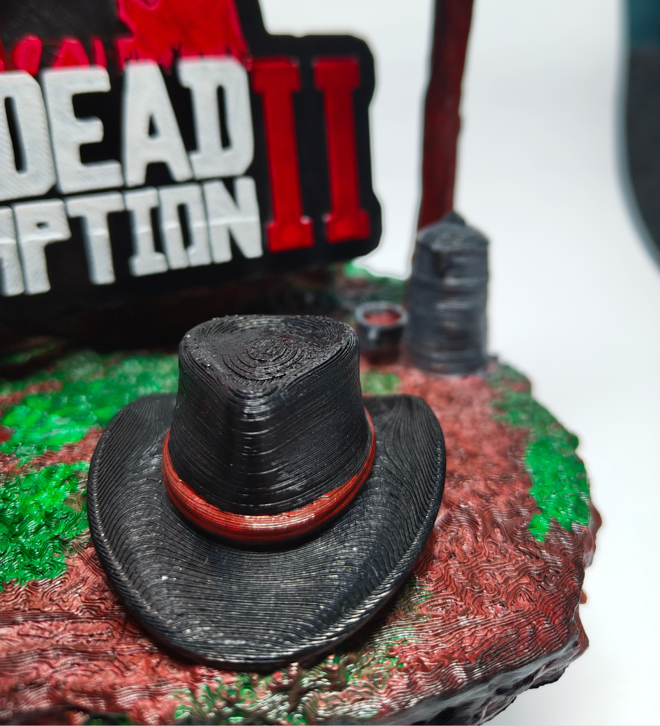 Brought to life through high-fidelity technology and finished by hand, this fan-made holder captures the rugged spirit of the American frontier. Designed as a striking tribute to the legendary open-world epic, this diorama brings the atmosphere of the wild west directly to your gaming sanctuary. Featuring iconic trail signs and Arthur’s weathered hat, it serves as the ultimate resting place for your gear after a long day on the trail.