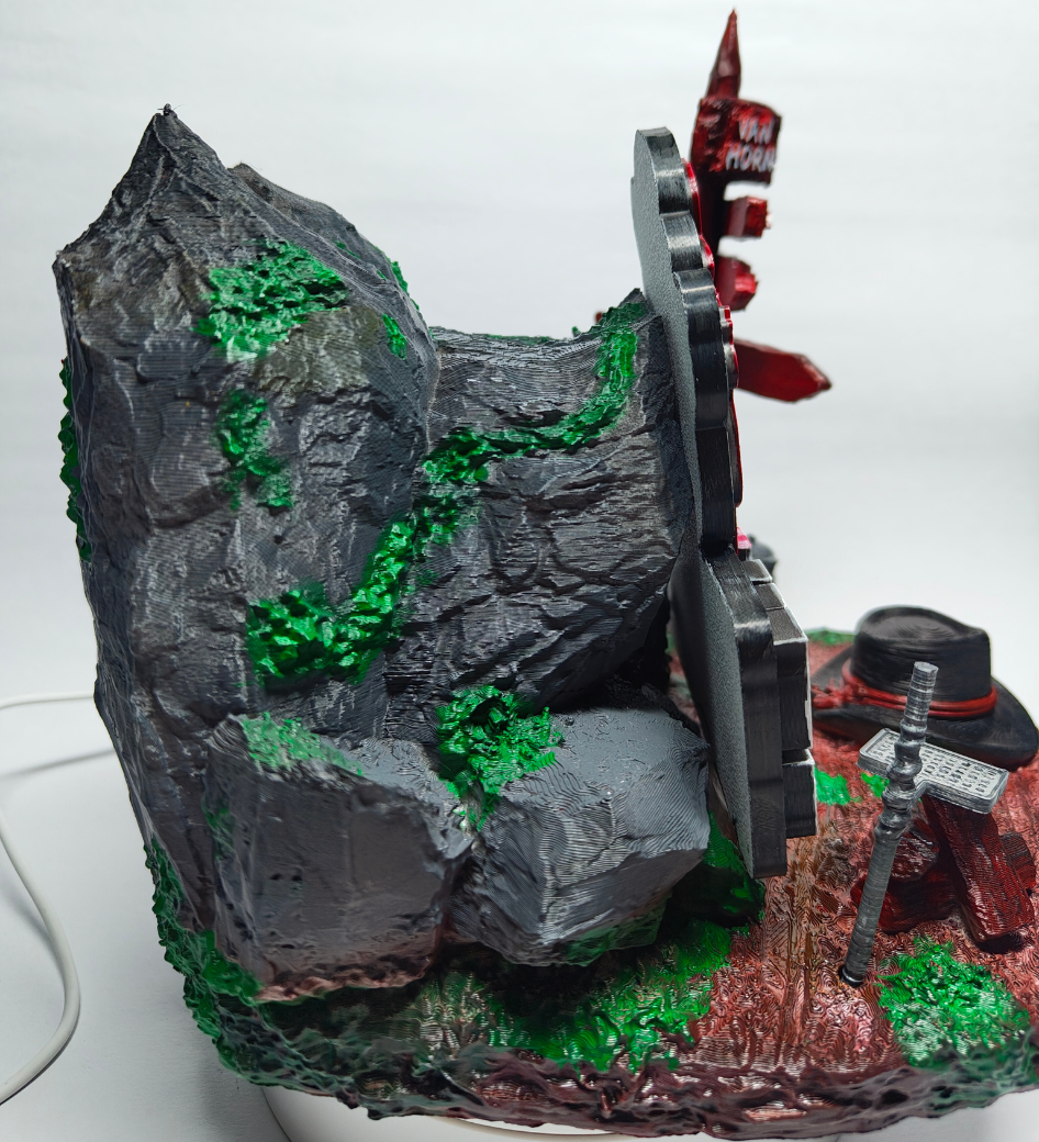 Every piece is 3D printed on-demand with high-precision detailing to capture the rugged textures of the mountain terrain and wooden trail markers. Because it is meticulously hand-painted with realistic weathering and earth tones, no two holders are exactly alike—giving you a unique relic that stands as a legendary centerpiece for your setup.